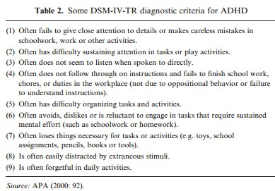 Substance abuse is a particularly straightforward case for economists to analyze, since it involves the trade-off between (1) one’s consumption level of a commodity and (2) the effects of this consumption on other areas of life. But numerous mental disorders have the same structure. One way to be diagnosed with ADHD, for example, is to have six or more of the symptoms of inattention shown in Table 2.