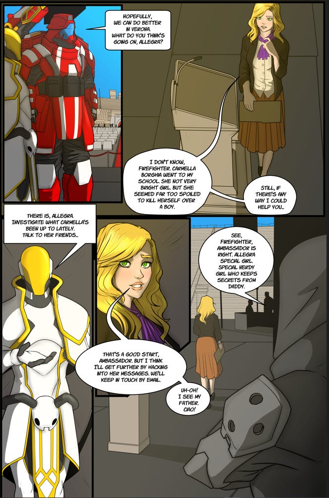 As a side venture, I've written *Amore Infernale*, an entirely fictional graphic novel. You can download the full script and storyboards here: http://bcaplan.com/ai.pdf. For a previous artist’s attempt at chapter 1, see: http://bcaplan.com/aidave.pdf.