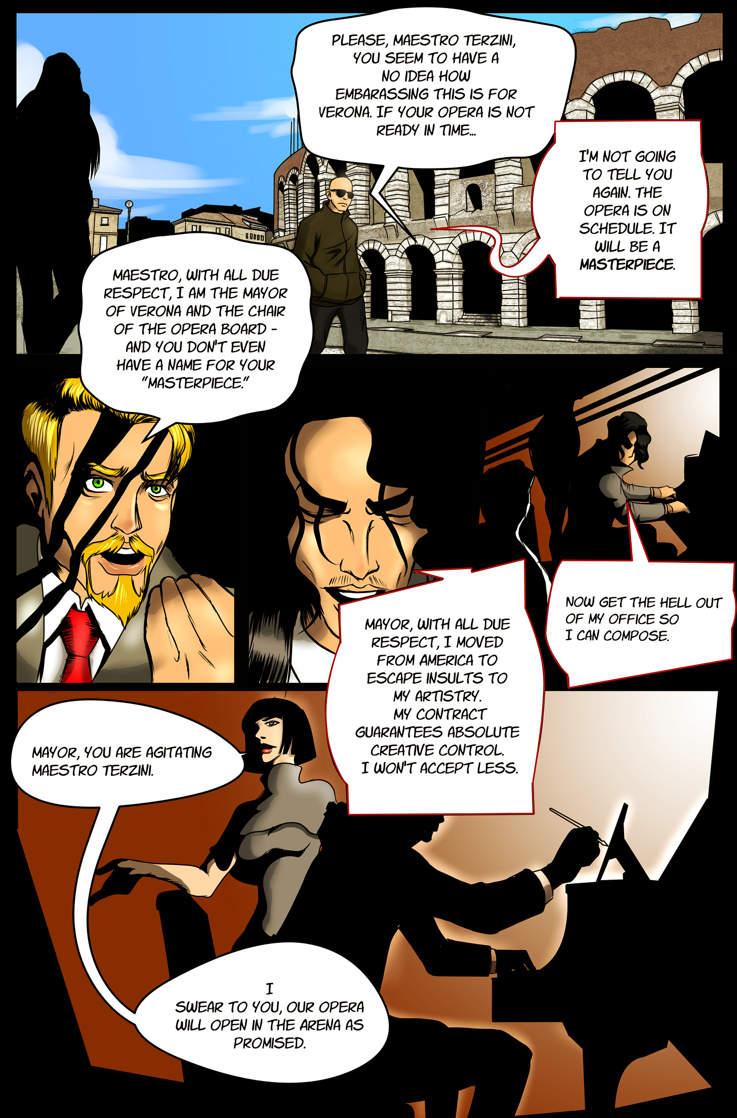 Before my latest AI illustration contest to draw my Amore Infernale, I had a regular illustration contest with the same goal. The winning artist, Aljon Dave, eventually quit the project, but not before he drew a gorgeous - and complete - Chapter 1.