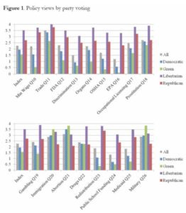 One might expect that a science about the welfare consequences of a policy would generate single-peakedness, even pronounced single-peakedness, as with the international trade question. After all, perfectly random responses would tend toward a uniform distribution. But notice that, in fact, many of the questions show a lack of single-peakedness.