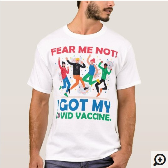 12. After trying this for a half hour, I realized that I would be better off going back to Zazzle. So I dumped Printful and created a new Zazzle store, #FearMeNot, minus the disapproved design. Happily, the Zazzle interface seemed to work just as seamlessly as I remembered. You can order “Fear me not! I got my COVID vaccine” shirts, sweatshirts, and hoodies now. (Be sure to use the coupon code TUESDAYGIFTZ).
