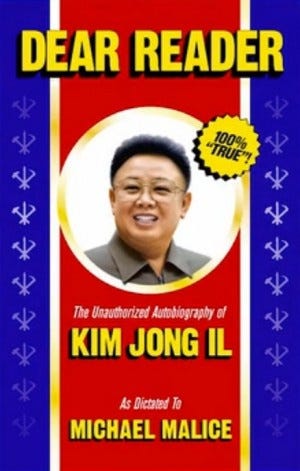 Michael Malice‘s Dear Reader: The Unauthorized Autobiography of Kim Jong Il is not what I expected. I thought it was going to be a hilarious mockery of North Korean totalitarianism. Instead, it’s an almost pitch-perfect simulation of the autobiography Kim Jong Il would have written. Except for the conclusion, Malice’s book comes close to passing my Ideological Turing Test. He writes North Korean propaganda like a true believer. A typical passage: