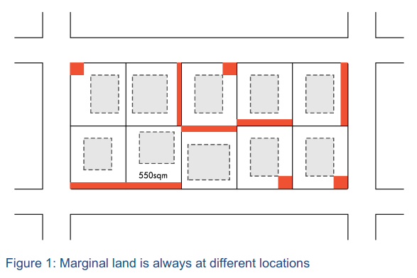 While a lower marginal compared to average land price for housing lots has broadly been thought to be an indicator of the economic cost of planning constraints or development taxes, in reality this measure contains no information about the effect of planning controls.