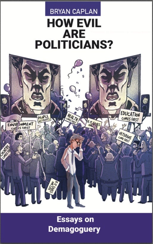 Like Labor Econ Versus the World, my new book thematically cherry picks what I consider my best EconLog posts from 2005-2022. The title essay argues that most politicians are deeply evil - and not merely because I disagree with their policy views. The key issue, rather, is epistemic negligence. As Spiderman teaches us, “With great power comes great responsibility.” Yet the vast majority of politicians wields vast power casually, with nary a thought to the underlying thorny moral questions: