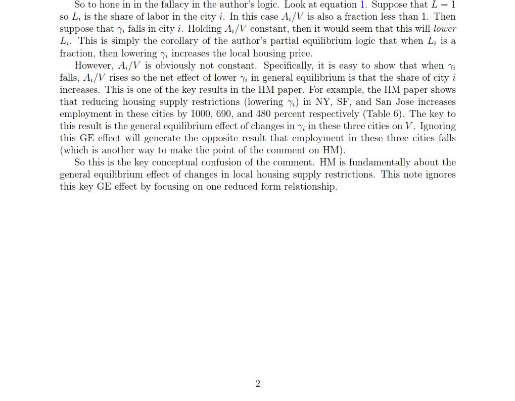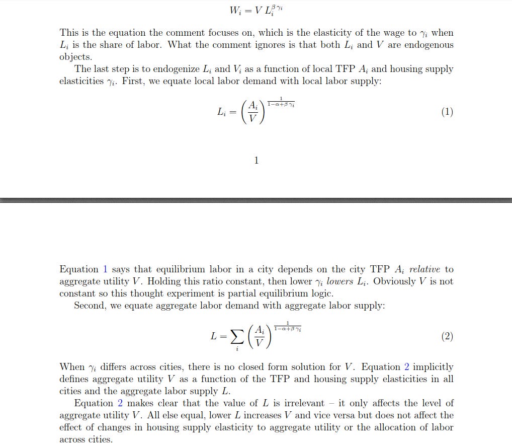 Look, my recollection is that I had a hard time reading through the original paper and don't really understand how they identify their general equilibrium model in data and why they think it's plausibly identified, but the napkin math prior here is that confidently asserting that constraints on housing only impact GDP by 0.02% is absurd.