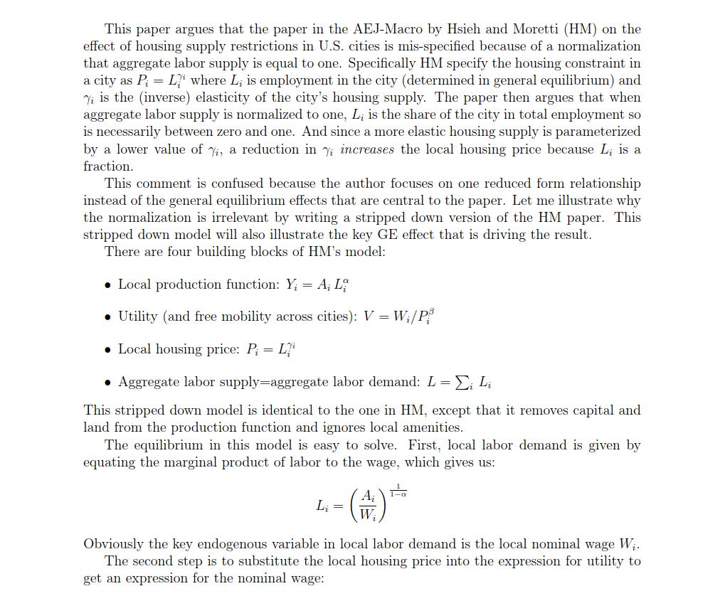 Recently, Brian Greaney of the University of Washington posted a totally new critique of Hsieh-Moretti. Greaney’s piece has been getting considerable attention. But this time, the original authors are not conceding error so easily. Hsieh has kindly given me permission to reprint his negative referee report, and here it is. Since there’s a lot of math, I’m screencapping it. Or read the pdf if you prefer.
