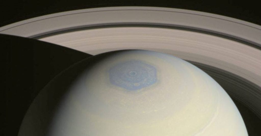 Here is a better example of something that looks artificial (but isn’t): I recently learned that there is a giant hexagon on Saturn, made of atmospheric gases. The hexagonal shape makes it much weirder than if it were simply round. Scientists aren’t sure why this exists, but there are some theories.