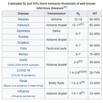 Thus, since measles is ultra-contagious, you don’t reach herd immunity until over 90% of the population is immune. The critical value for flu, in contrast, is barely one-third of that. Estimates of the critical value for COVID-19 range from 29-74%. Check out this table.