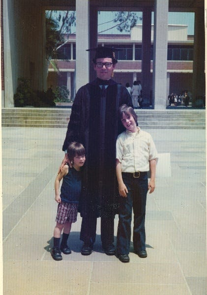 Photo: My father’s Ph.D. graduation, with me (left), and my brother (right)