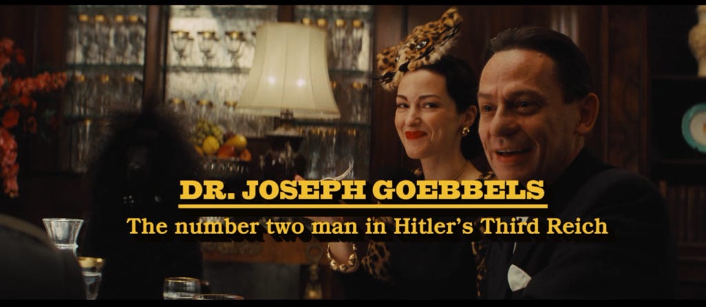 GOEBBELS: I see your public speaking has improved. It appears I’ve created a monster. A strangely persuasive monster. When the war’s over, politics awaits.