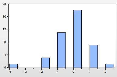 The resulting histogram has a mean of -.29 and a standard deviation of 1.08, with a maximum of +2 and a minimum of -4.