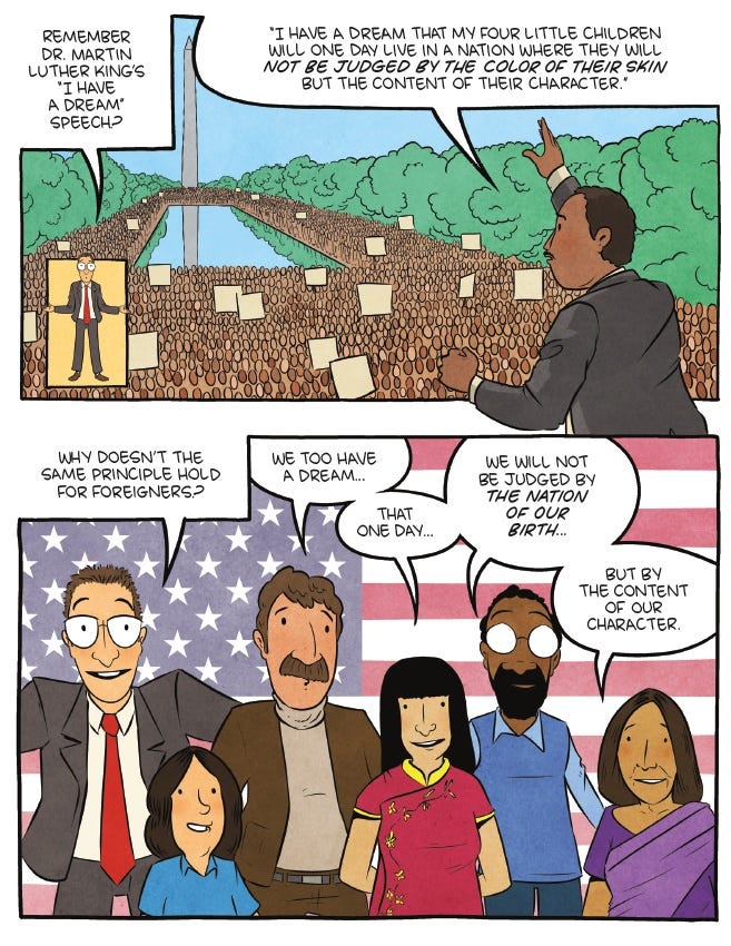 My dream, in short, is that my sons and daughter will live to see a world of open borders. If the arc of the moral universe bends toward justice, our descendants will view the immigration restrictions we continue to casually accept with the same horror that we now reserve for Jim Crow.