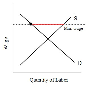 Figure 2: Low-Skilled Labor Market With Minimum Wage But No Welfare