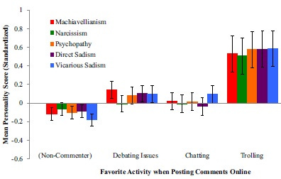 Last week on Facebook, I asked: “Trolls: bored or malevolent?” Today I discovered some relevant research. According to Buckels, Trapnell, and Paulhus, “Trolls Just Want to Have Fun” (Personality and Individual Differences, 2014) “malevolent” is the main answer. Indeed, it’s unclear why the article isn’t called, “Trolls Just Want to Hurt People.”
