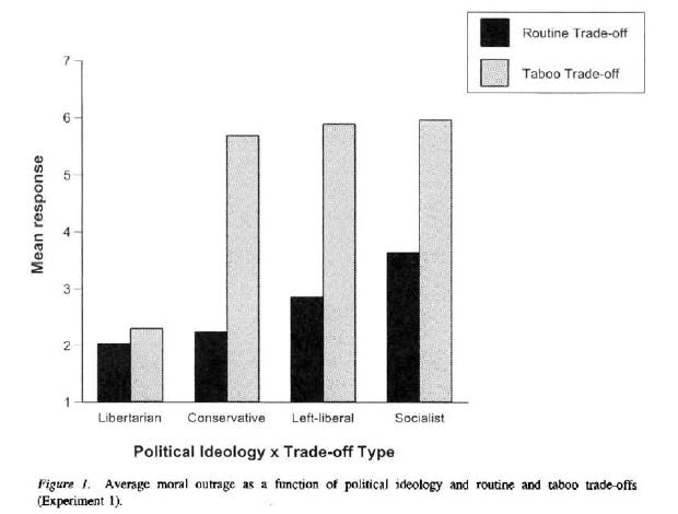 A fun figure from Tetlock et al.’s “The Psychology of the Unthinkable.” Possible level of outrage ranges from 1-7, 7 being highest.