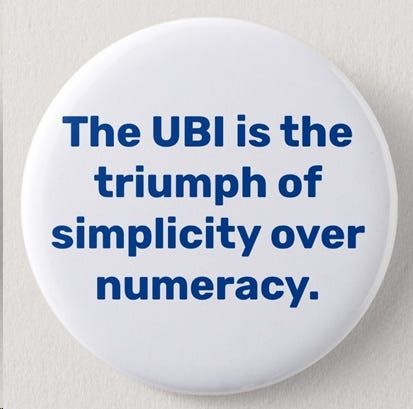 The UBI math seems so absurdly unfavorable that I shall forego lamenting our obvious political dysfunction.